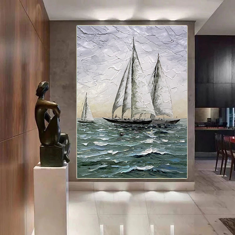 Home > Hand Painted Impressionism Sunrise Seascape Abstract Oil Painting Canvas Art Poster Picture Wall House Decoration Mural