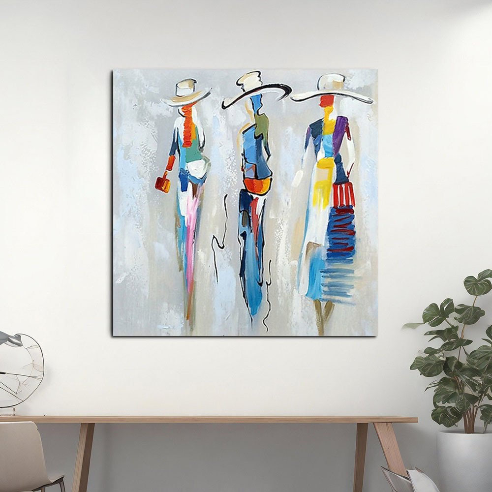 Home > Oil Painting Hand Painted Square Abstract People Classic Modern Rolled Canvas Luxury home corridor living room decorative art
